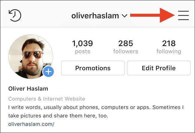Come ci si potrebbe aspettare, il punto di partenza è l'app di Instagram. Apri l'app e tocca il pulsante "Profilo".