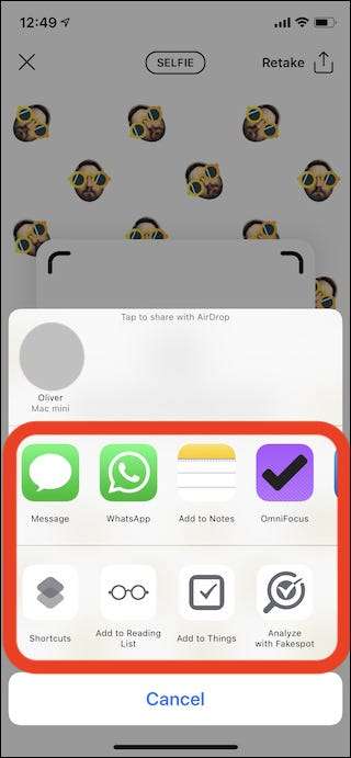 Da questo punto in poi, il processo è lo stesso della condivisione di qualsiasi altro contenuto tramite il foglio di condivisione iOS. Tocca l'app che desideri utilizzare e procedi di conseguenza, che si tratti di Messaggi, Twitter o qualsiasi altra app.