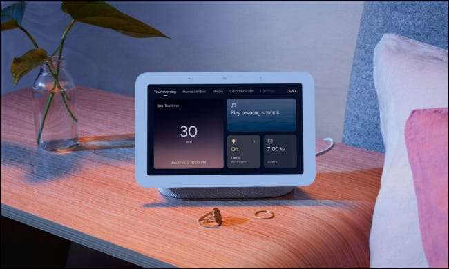 Il Nido hub. Può essere utilizzato per guardare video, effettuare videochiamate e anche come un modo per svegliarsi al mattino. Sia i dispositivi hub che i dispositivi audio possono anche comunicare tra loro, il che significa che il proprietario può ascoltare musica o podcast mentre si muovono attraverso la loro casa.