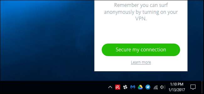 Avira mostrerà anche un annuncio pubblicitario che ti incoraggia ad iscriverti al suo servizio Avira Phantom VPN ogni volta che ti connetti a un aprire la rete Wi-Fi . Non puoi disabilitarlo, nemmeno disinstallando il software Avira Phantom VPN.