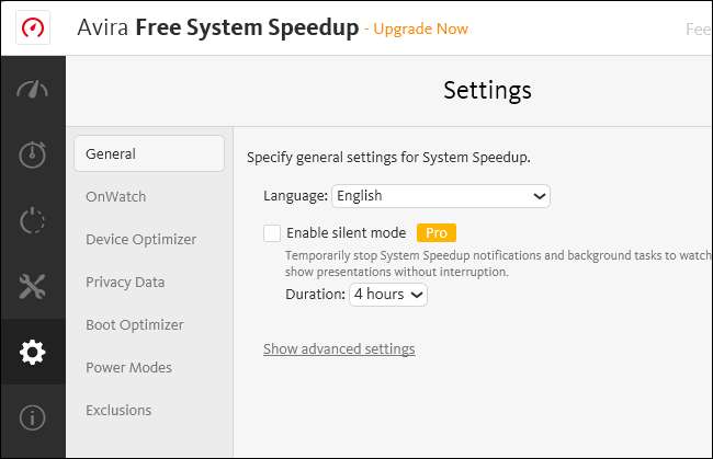 Gli strumenti Phantom VPN e System Speed-Up di Avira non fanno parte del software antivirus Avira stesso, ma possono essere installati insieme ad esso. Se hai solo la versione gratuita, questi strumenti in realtà non faranno molto a meno che tu non paghi per la versione "Pro". Per aggiungere la beffa al danno, lo strumento Free System Speedup di Avira non ti consente nemmeno di "Abilita la modalità silenziosa" senza pagare la versione Pro.