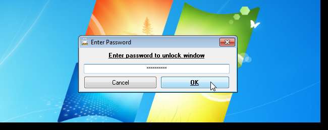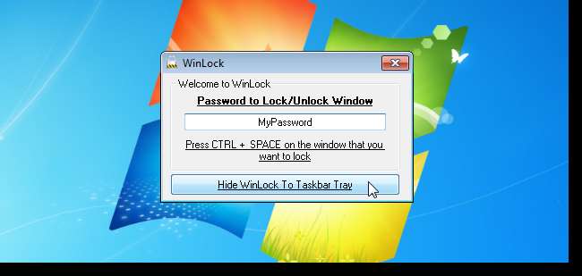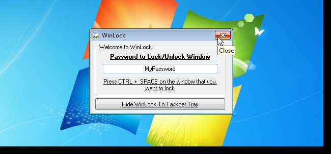 Quando esegui WinLock, viene visualizzata una piccola finestra che ti chiede di inserire una password principale. Questa password viene applicata a ciascuna finestra bloccata, inclusa la finestra di WinLock stessa.