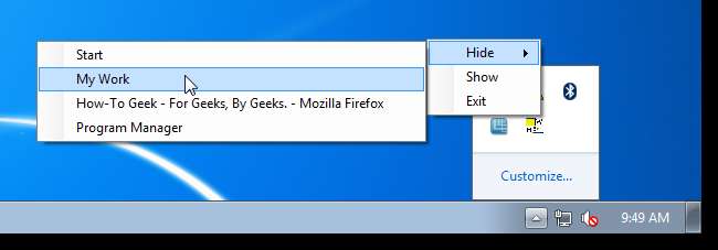 Per chiudere Window Hider, fare clic con il pulsante destro del mouse sull'icona Window Hider nella barra delle applicazioni e selezionare Esci dal menu a comparsa.