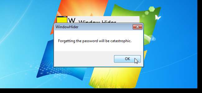 Window Hider è simile a WinLock in quanto consente di nascondere facilmente le finestre aperte. Tuttavia, a differenza di WinLock, la finestra che stai nascondendo non deve essere attiva. Le finestre nascoste vengono ridotte a icona, ma non vengono visualizzate direttamente nella barra delle applicazioni. Pertanto, queste finestre non sono così ovvie per chiunque altro utilizzi il tuo computer. Inoltre, non è richiesta una password per nascondere una finestra.