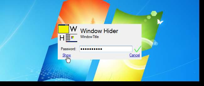 Se hai applicato una password alla finestra, Window Hider ti chiederà la password. Inseriscilo e fai clic su Mostra.