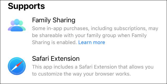 Se un'app è un'estensione o include una, vedrai "estensione safari" elencata sotto la voce Supports. Installare l'app e installerà l'estensione accanto.