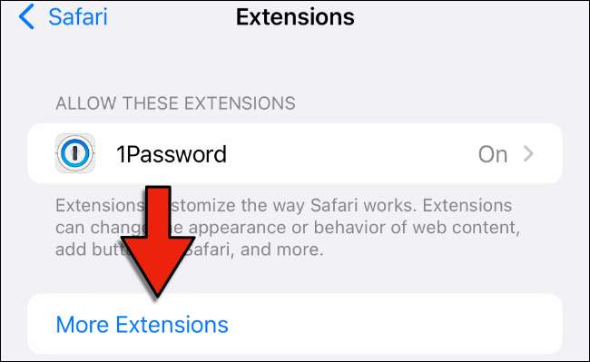 Per sfogliare una selezione delle estensioni disponibili, è possibile aprire le impostazioni, scorrere verso il basso le impostazioni di Safari, quindi andare alle estensioni. Scorri fino alla fine dello schermo e tocca più estensioni per visualizzare un elenco di estensioni all'interno dell'app store.