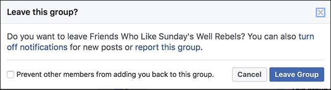 Se vuoi assicurarti di non poter essere aggiunto di nuovo senza i tuoi desideri, seleziona la casella Impedisci ad altri membri di aggiungerti a questo gruppo. Questa opzione è disponibile solo sul Web, quindi probabilmente vorrai farlo su un computer anziché su un telefono o tablet.