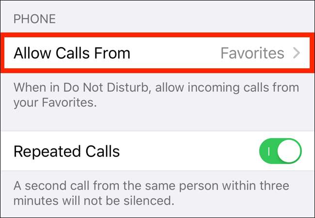 L'elenco dei preferiti si integra anche direttamente con la funzione Non disturbare. Per configurare le cose, apri l'app Impostazioni, vai su "Non disturbare", seleziona "Telefono", quindi tocca "Consenti chiamate da".