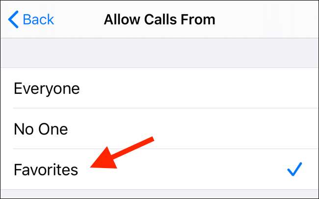 Quindi, cambia l'impostazione su "Preferiti". Con questo set, chiunque ti chiami dall'elenco dei preferiti sarà autorizzato.
