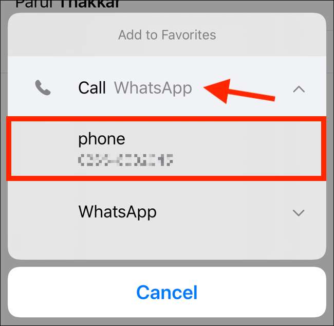 Scegli l'opzione "Chiama" e quindi seleziona il loro numero.