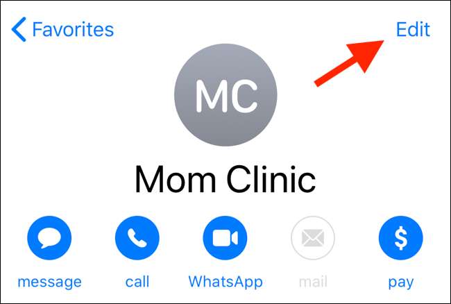 Toccare il contatto per aprire la scheda del contatto. Quindi tocca il pulsante "Modifica" nell'angolo in alto a destra.