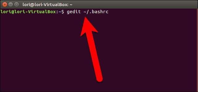 Per modificare il file .bashrc, utilizzeremo gedit. Digita il seguente comando al prompt.