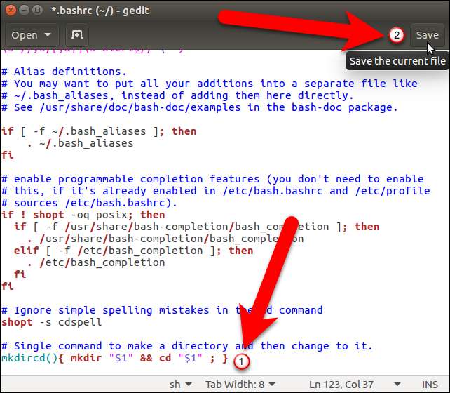 Scorri fino alla fine del file .bashrc e aggiungi la riga seguente alla fine del file. Ti consigliamo di copiare la riga sottostante e incollarla nel file .bashrc.