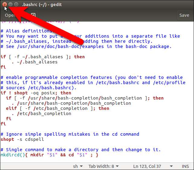 Chiudi gedit (o un altro editor di testo) facendo clic sulla "X" nell'angolo in alto a sinistra della finestra.