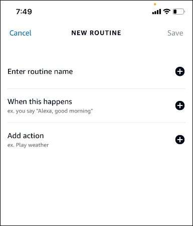Toccare "Routine", quindi tocca l'icona "+" nell'angolo in alto a destra.