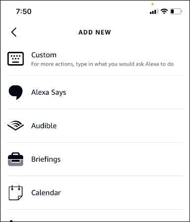 Qui puoi specificare le azioni che vorresti fare Alexa. Alcune azioni includono notifiche drop-in automatiche, una lettura udibile, aggiornamenti di consegna, chiamate e un'e-mail automatica con un account connesso.