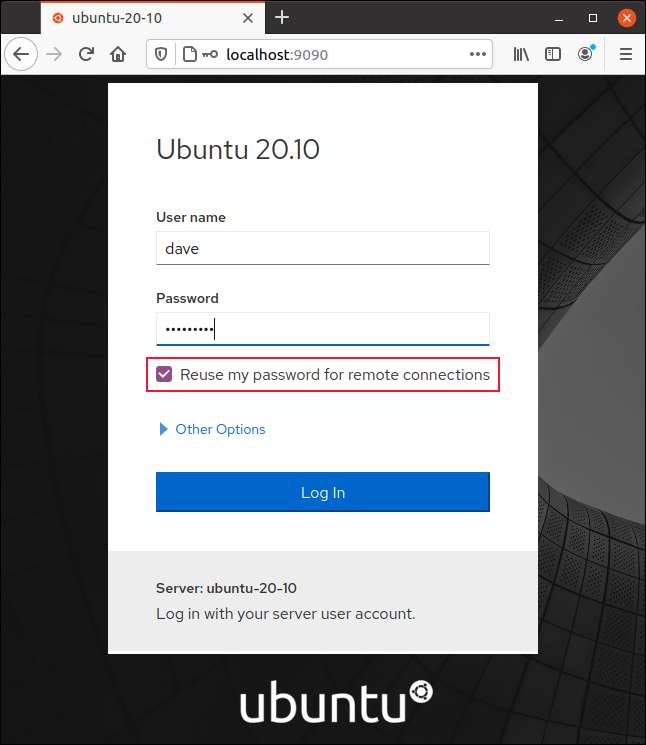 Quando viene lanciato il cockpit, viene visualizzata la schermata di accesso; Accedi con le tue credenziali Linux esistenti.
