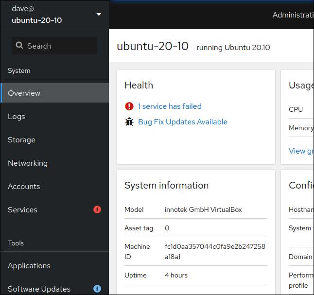 Cockpit. Cravatta molti requisiti di monitoraggio e amministrazione comuni in una console basata su browser, rendendo più facile monitorare e mantenere più computer Linux.