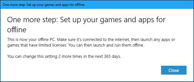 avvertimento : Puoi cambiare il dispositivo offline designato solo tre volte all'anno. Per fare un confronto, Steam non ti limita affatto a un singolo dispositivo offline e non c'è certamente alcun limite annuale ai tuoi PC da gioco. Questa è un'altra buona ragione per farlo evitare di acquistare giochi su Windows Store, se possibile .