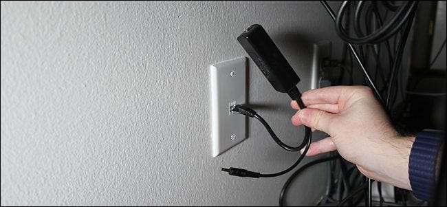 Molti dispositivi, come le webcam Wi-Fi, ottengono l'alimentazione collegandosi a una presa vicina tramite USB. Ma se vuoi posizionare quel dispositivo da qualche parte dove una presa non si trova nelle vicinanze, puoi utilizzare le prese Ethernet esistenti (o eseguire tu stesso Ethernet) per alimentare la videocamera utilizzando un pratico adattatore.