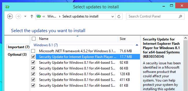 Se utilizzi Internet Explorer su Windows 8 o Windows 8.1, Microsoft include anche una versione del plug-in Flash con IE. Riceverai aggiornamenti per Flash per IE da Windows Update insieme agli altri tuoi aggiornamenti di sicurezza.