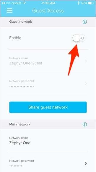 Ogni volta che si desidera disattivare la rete Wi-Fi ospite, è sufficiente toccare l'interruttore accanto a "Abilita" per disattivarla.