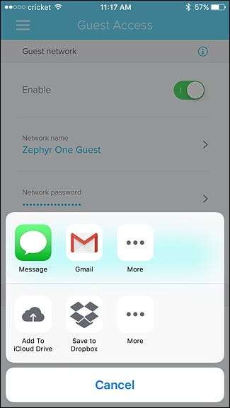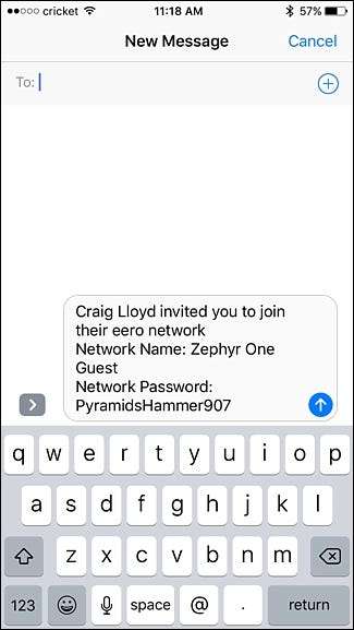 Eero creerà automaticamente un passaggio con i dettagli della tua rete ospite che puoi inviare a tutti i tuoi amici, in modo che possano connettersi al tuo Wi-Fi proprio quando arrivano a casa tua senza dover chiedere.