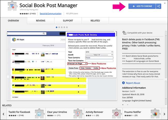 Useremo Responsabile dei libri sociali per Google Chrome. Non siamo riusciti a trovare un'estensione per Firefox o Safari che funzioni altrettanto facilmente, quindi anche se non sei un utente di Chrome, probabilmente stai meglio installazione di Chrome temporaneamente solo per poter utilizzare questa estensione per riordinare il tuo account Facebook.