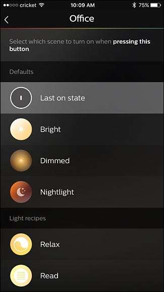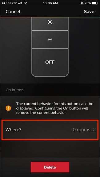 Innanzitutto, dovrai collegare la nuova app al tuo hub Hue Bridge e ricreare manualmente tutte le tue scene (sfortunatamente, non puoi importare scene dall'app Hue). Quindi, se il tuo interruttore dimmer Hue è stato configurato in precedenza, lo pulirai per iniziare con uno stato nuovo e riassegnare i suoi pulsanti.