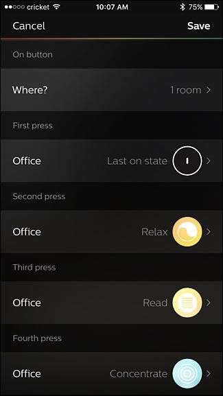 Attualmente è solo iOS e richiede iOS 7.1 o versioni successive e, sebbene cinque dollari siano un prezzo ragionevole per riprogrammare il tuo interruttore dimmer per farlo esattamente come desideri, iConnectHue è molto più di un semplice strumento di programmazione degli interruttori: puoi farlo controlla l'elenco completo delle funzionalità sul loro sito.