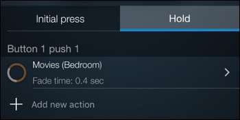 Ed ecco fatto: una nuova funzione (in questo caso premendo e tenendo premuto il pulsante 1 per attivare la scena "Film" in camera da letto) è associata al pulsante Dimmer Switch: