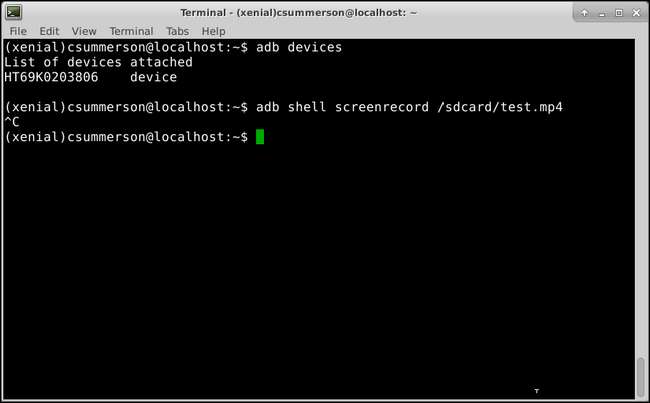 Questo registrerà per circa tre minuti. Se desideri terminarlo prima, premi semplicemente Ctrl + C sulla tastiera nella finestra del terminale attiva. Vale anche la pena ricordare che lo farà non registra qualsiasi audio, solo ciò che accade sullo schermo.