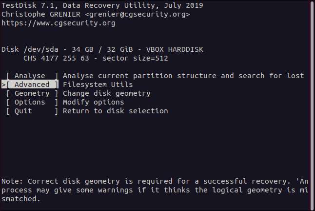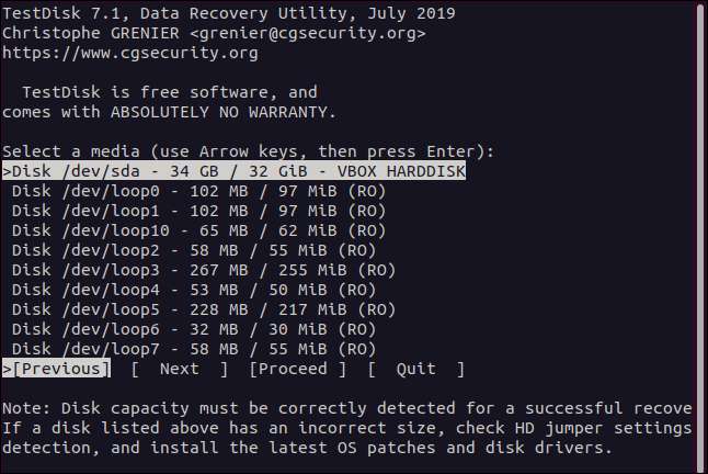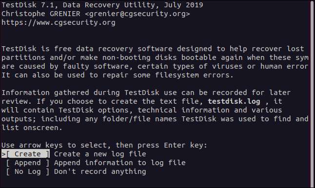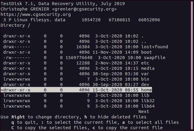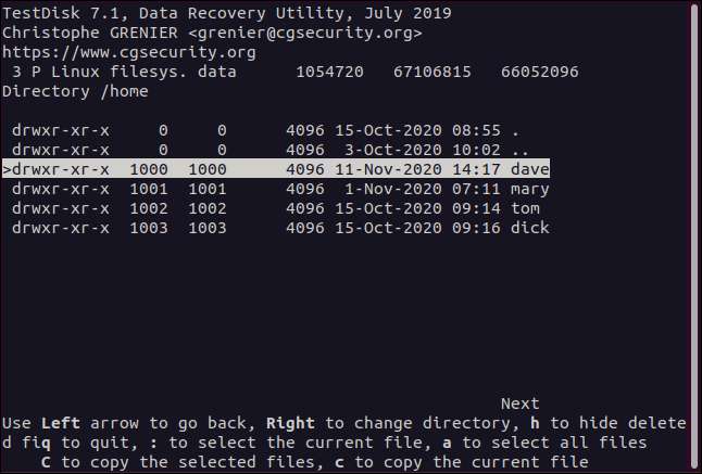 ha un'interfaccia rudimentale. Si utilizzano i tasti freccia per navigare ed entrare per effettuare una selezione. Per mantenere le cose ordinate, è meglio creare una directory per i file ripristinati.
