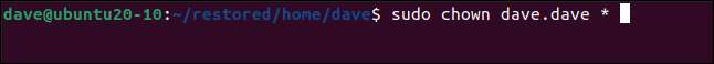 , i file recuperati sono stati ripristinati con "root" come proprietario. Possiamo cambiare il proprietario in "Dave" usando