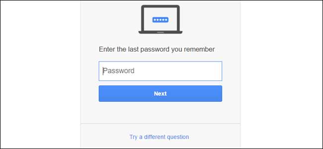 Avviare il processo di recupero della password è piuttosto semplice: fai clic sul link "password dimenticata" su la pagina di accesso di Gmail . Ti verrà quindi mostrato un messaggio che ti chiede di inserire la tua ultima password può ricorda. Se riesci a ricordare una password corretta e hai impostato un sistema di backup, ti verrà chiesto di continuare in vari modi. Se non ricordi nessuno di loro, fai clic su "prova una domanda diversa".