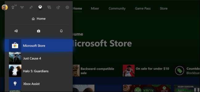 Prendi una moneta, una graffetta o un altro pezzo di metallo per grattare il rivestimento sul retro della carta regalo. Quindi, vai su Xbox One e apri Microsoft Store.