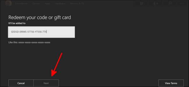 Inserisci il codice di 25 cifre del buono regalo, quindi seleziona "Avanti".
