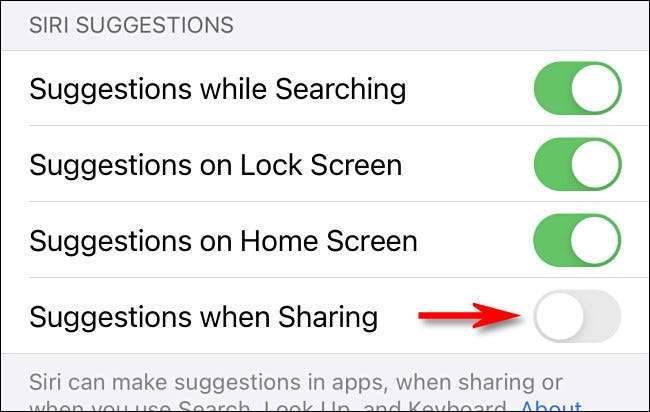 In "Siri & amp; Cerca, "Tocca l'interruttore accanto a" suggerimenti durante la condivisione "per spegnerlo.
