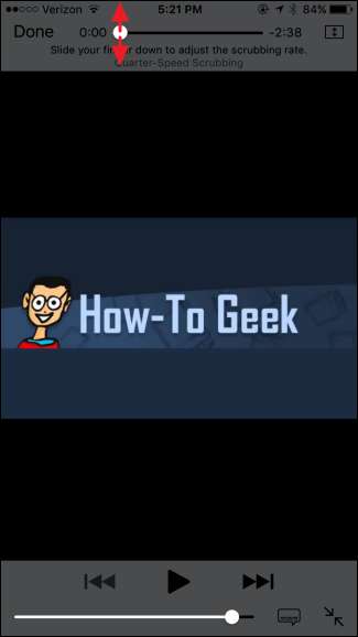 Ci vuole un po 'di pratica, dal momento che devi tenere premuto il punto per tutto il tempo. E, se il tuo pollice è grasso come il mio, di solito oscurerà il display che mostra la velocità di lavaggio. Trovo più facile strofinare dopo la pausa, ma puoi andare in entrambi i modi. L'implementazione non è perfetta, ma è una piccola funzionalità utile per trovare il punto che stai cercando in quel film.