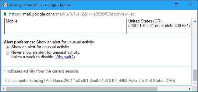 Gmail di Google ha una funzione di attività dell'account separata. Ti mostra quali indirizzi IP hanno avuto accesso di recente alla tua casella di posta Gmail.