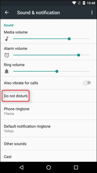 - Su Nexus e altri dispositivi simili, passa al menu "Suoni e notifiche", quindi "Non disturbare".