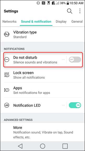 - Sui dispositivi LG, scorri fino alla scheda "Audio e notifiche", quindi verso il basso fino a "Non disturbare".