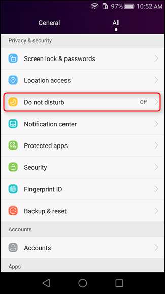 - Sui dispositivi Huawei, assicurati di essere sulla scheda "Tutti", quindi scorri verso il basso fino a "Non disturbare".