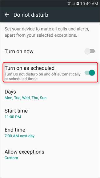 Da lì, puoi iniziare a personalizzare il tuo programma Non disturbare, inclusi giorni e orari, nonché chi e cosa può passare.