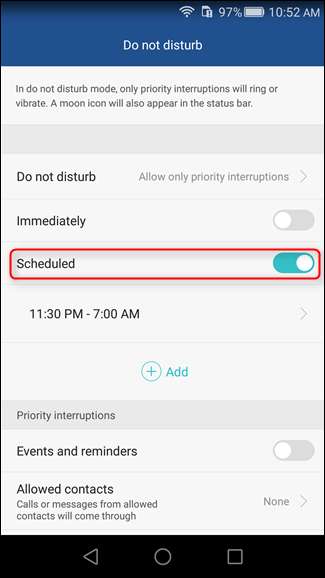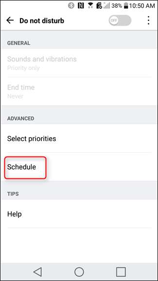 Una volta nel menu Non disturbare, cercherai una sorta di opzione di "pianificazione":