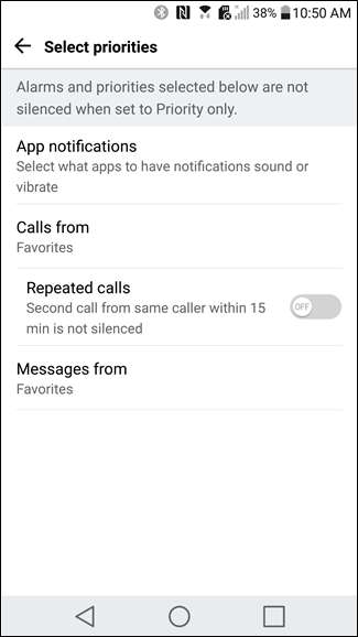 - Sui dispositivi LG, scegli "Seleziona priorità" nella sezione "Avanzate" del menu Non disturbare.