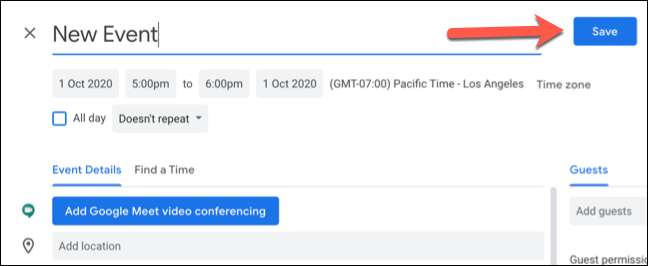 Confermare che il resto dei dettagli dell'evento è corretto, quindi toccare il pulsante "Salva" nell'angolo in alto a destra per salvare l'evento con i nuovi dettagli del fuso orario.