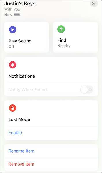 Inoltre, è possibile contrassegnare Airtag come perso, rinominare l'articolo e rimuovere il tracker Bluetooth dal tuo ID Apple e la ricerca della mia rete.