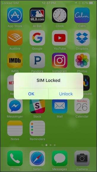 Quindi, riavvia il telefono. Dovresti ricevere un messaggio che ti informa che la tua SIM è bloccata. Se tocchi semplicemente "OK" a questo punto, la tua scheda SIM sarà temporaneamente non disponibile fino a quando il dispositivo non ti chiederà di sbloccarla di nuovo, ad esempio se provi a chiamare o inviare un messaggio a qualcuno. Toccando "Sblocca" potrai inserire il PIN della SIM.